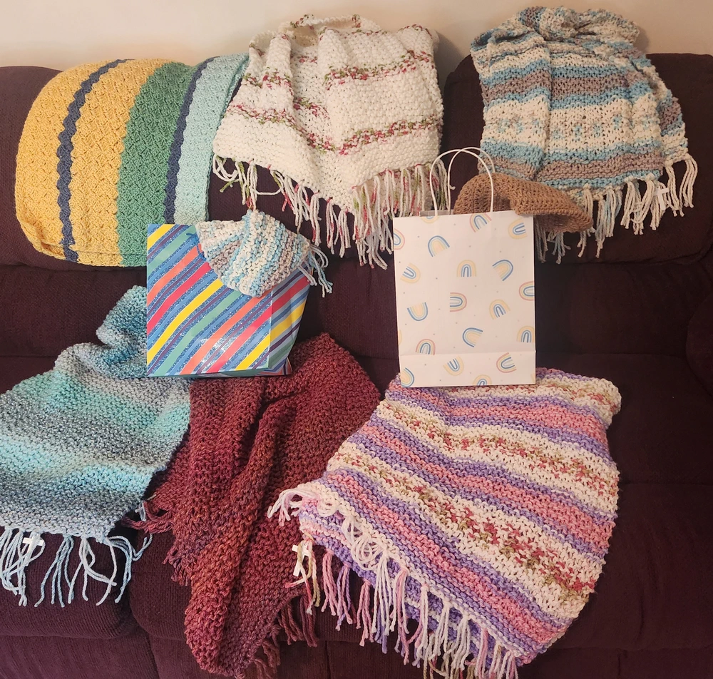 Crocheted or knitted shawls are made at home to be given to those who need special prayers.